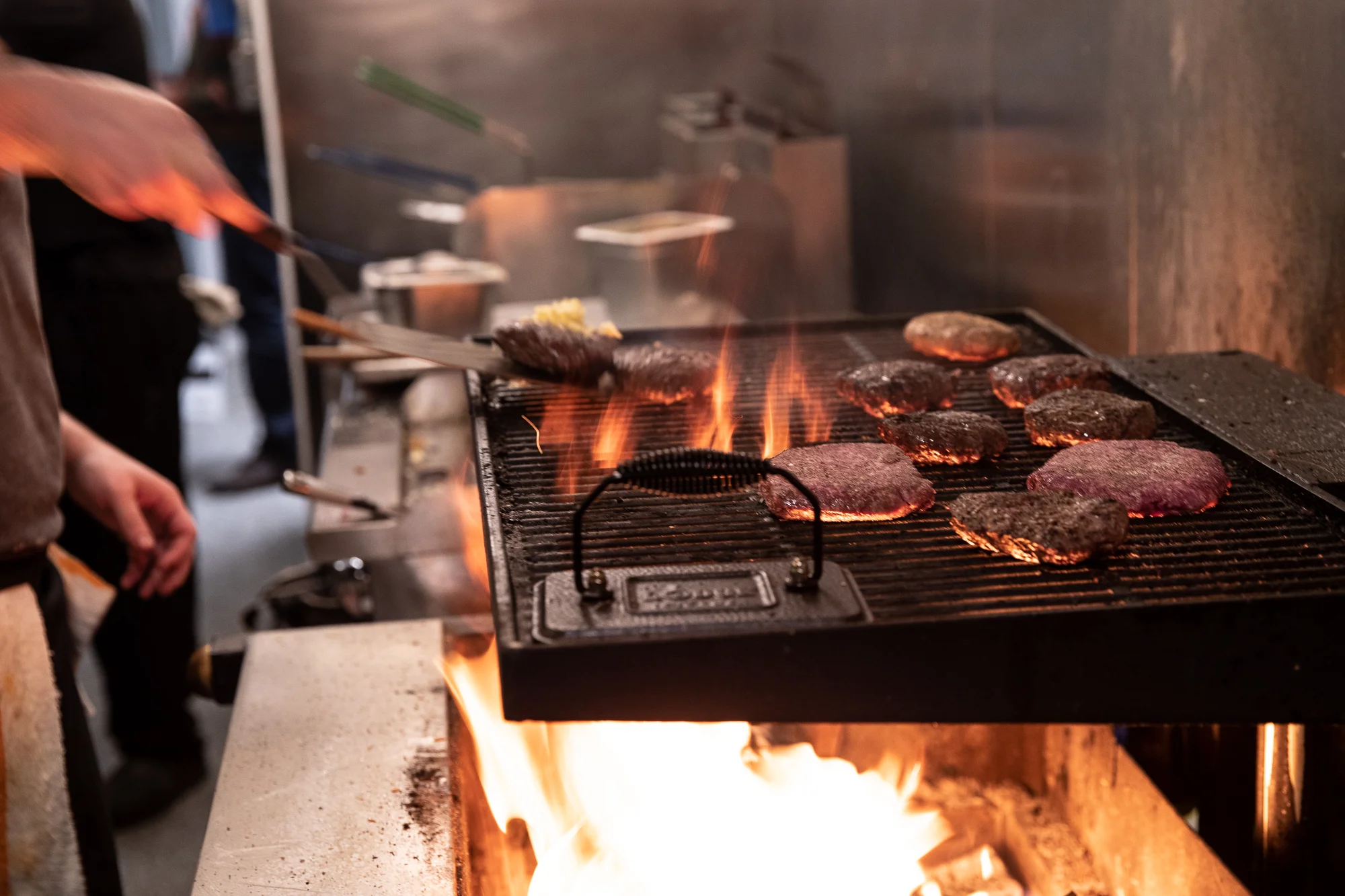 The Big Daddy M Burger $22 - 6oz Almanack Farms beef patty, Bayley Hazen Blue Cheese, Bacon Bits, Caramelized Onions, Garlic Aioli, Bibb Lettuce and Red Onion on a Worthy Bun